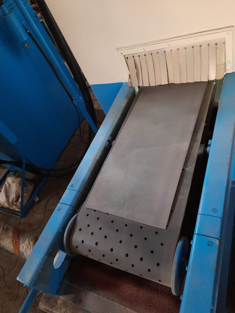 • Perforated Endless Belt Conveyor System: Provides stable and continuous movement of parts through the blasting chamber, supporting smooth handling and uniform exposure to the blast stream.