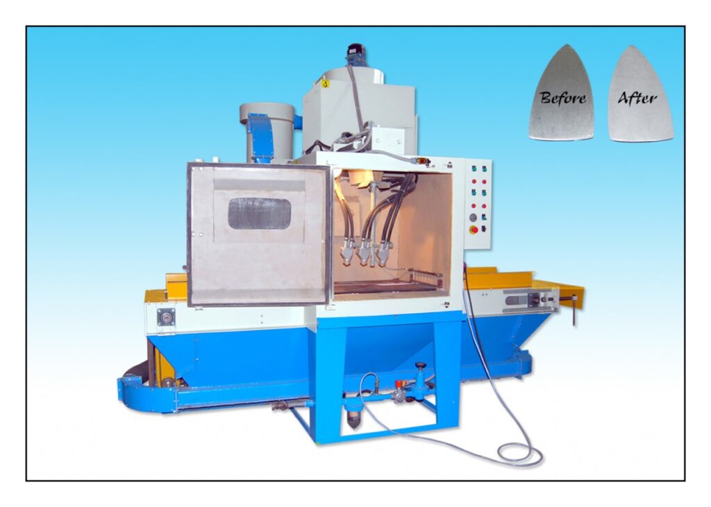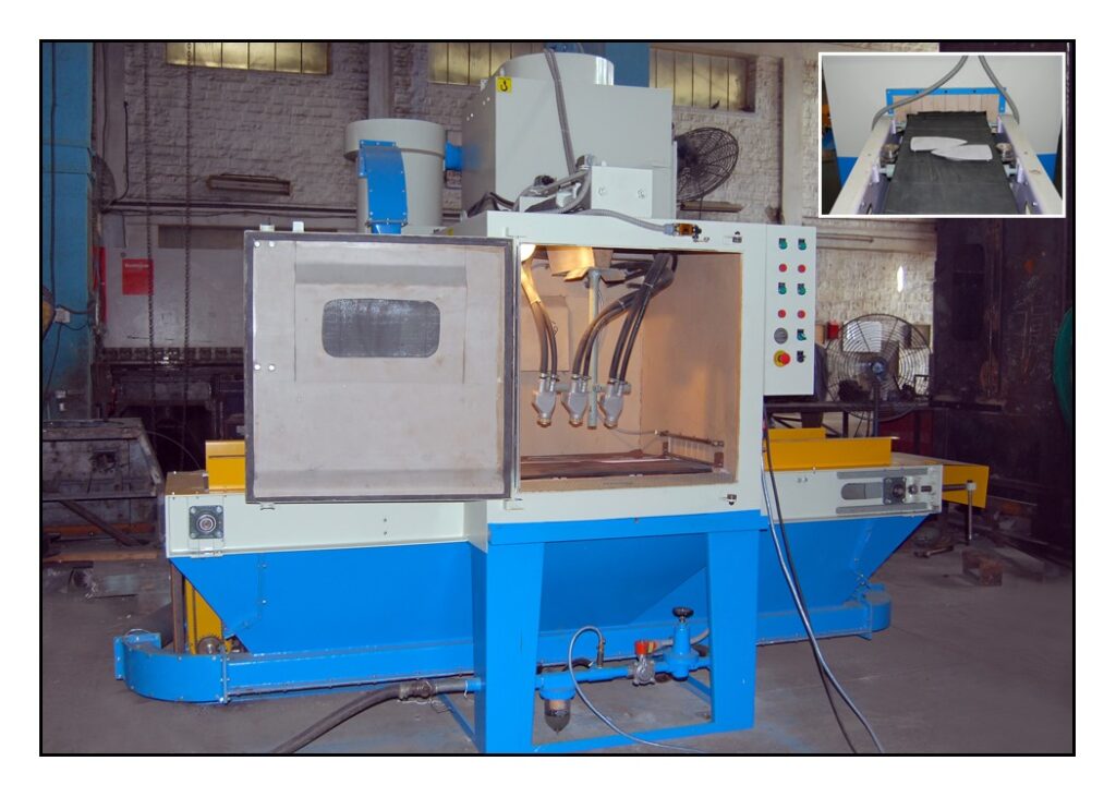 • Adjustable Conveyor Speed Control: Allows fine-tuning of part exposure time inside the blast zone, ensuring process flexibility for different surface finish requirements.