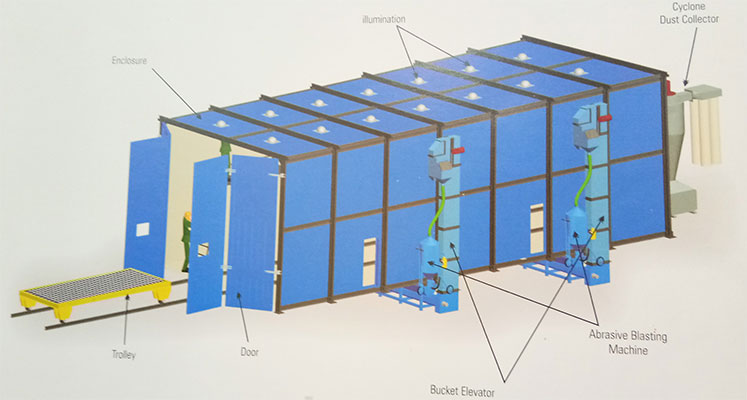 Our Blast Room Systems are purpose-built enclosures designed to accommodate large, bulky, or intricately shaped workpieces that require intensive manual abrasive blasting. These robust systems offer a fully enclosed, dust-controlled environment where surface preparation tasks—such as rust and scale removal, paint stripping, descaling, and surface profiling—can be carried out with precision and safety. Designed for high-volume or heavy-duty operations, our blast rooms ensure operator protection, abrasive recycling efficiency, and compliance with environmental standards, making them an ideal solution for demanding industrial applications.