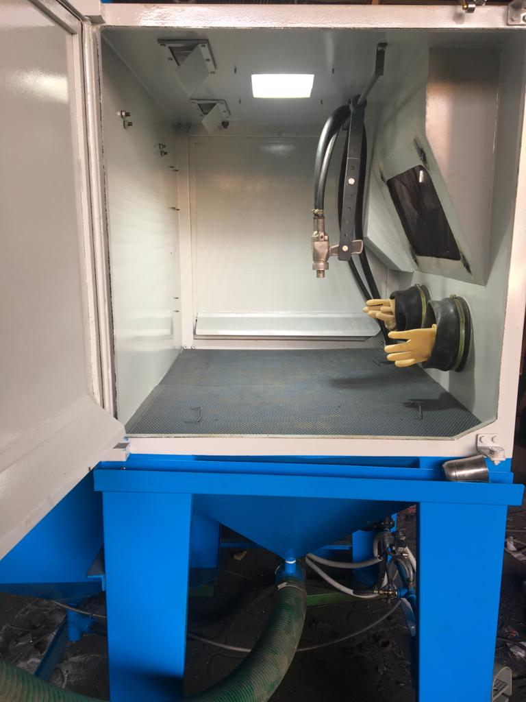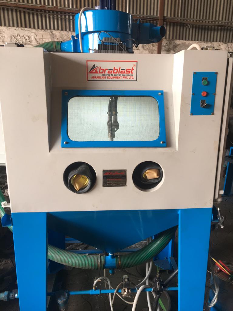 The Cabinet Type Suction-Based Abrasive Blasting Machine is a compact and efficient surface treatment system engineered for light to moderate cleaning, deburring, descaling, and surface finishing operations. Designed for enclosed blasting operations, it ensures dust-free and environmentally safe surface preparation. This machine utilizes a suction blasting mechanism, drawing abrasive media through a blast gun using a vacuum created by compressed air, making it ideal for continuous, economical, and low-maintenance operations.