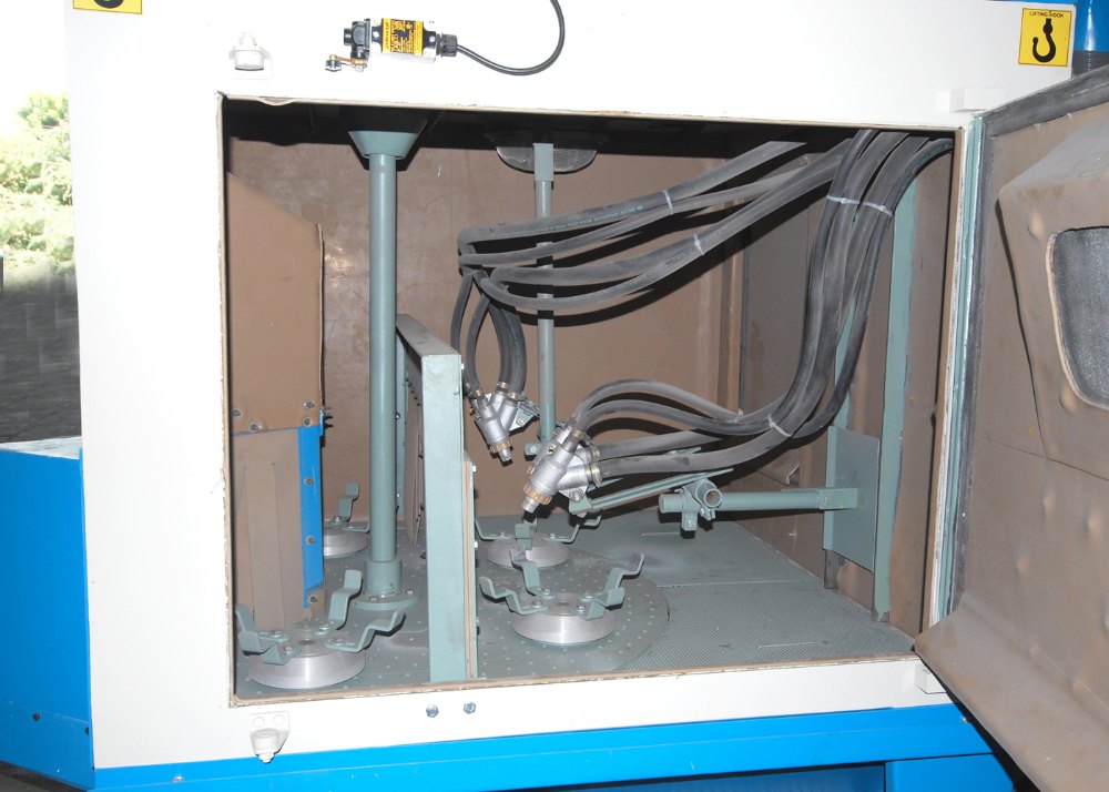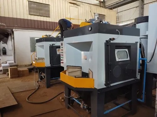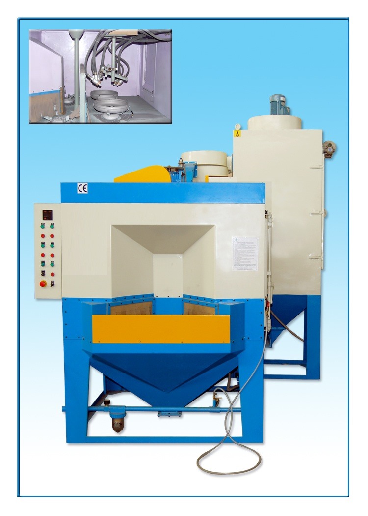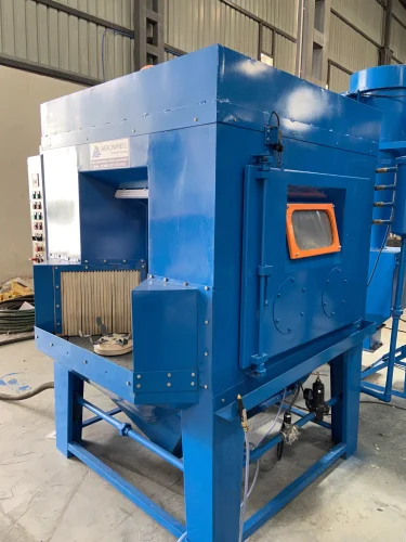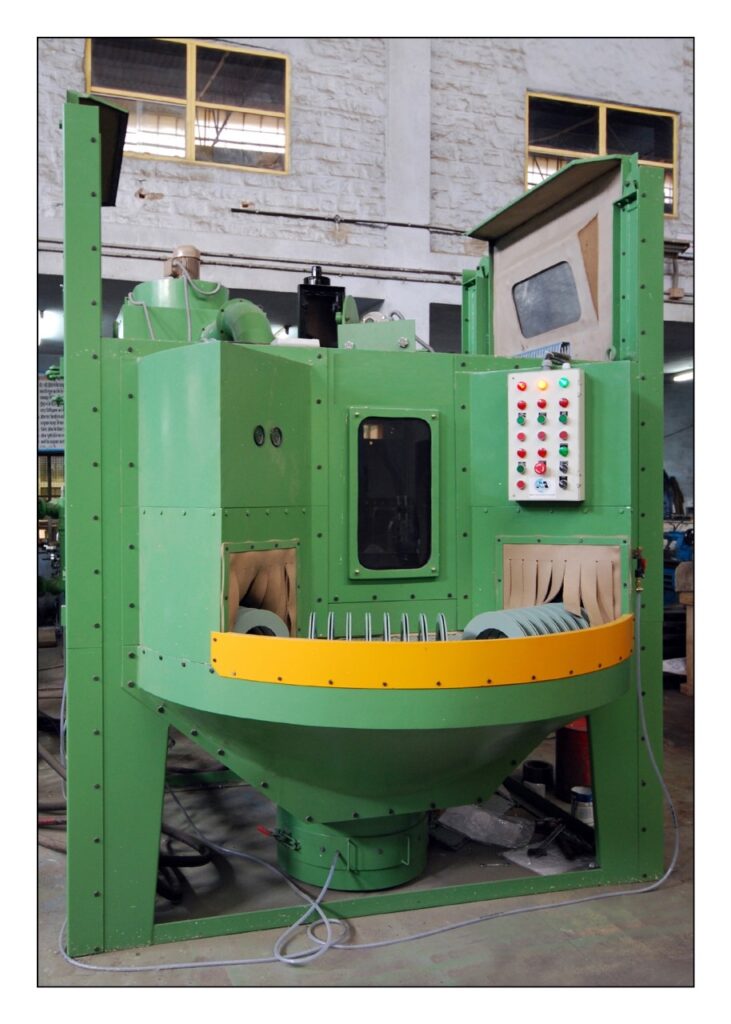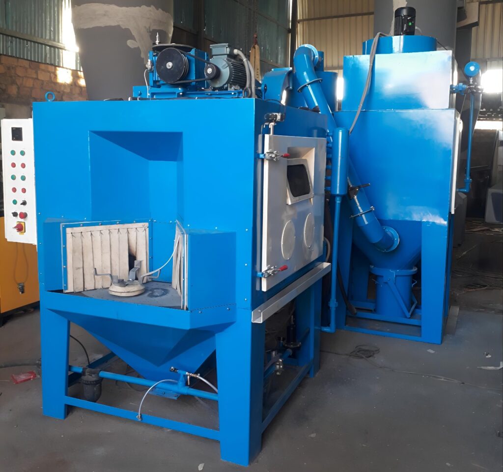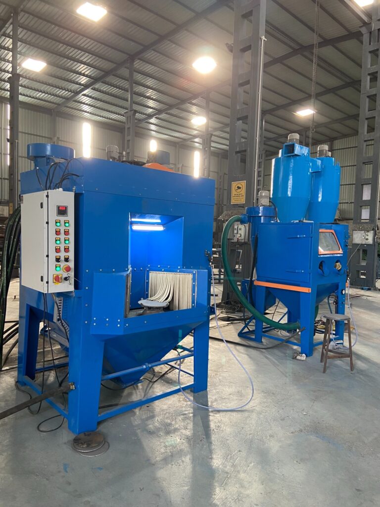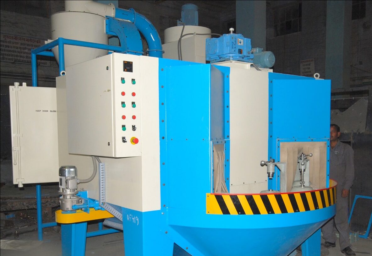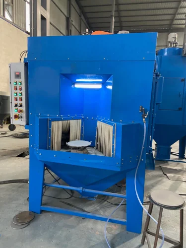 This machine uses a mechanically indexed rotary turntable system that positions components in front of high-performance blast guns for uniform surface cleaning, descaling, matte finishing, and pre-paint preparation. With multiple workstations and options for automatic loading and unloading, it ensures high productivity with minimal operator involvement, making it ideal for mass production lines.