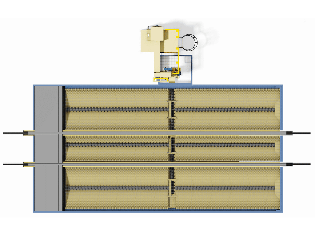 • Grid of screw conveyors beneath floor grating